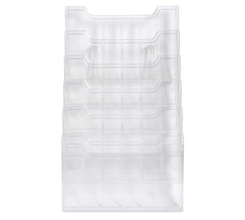 MODULIERBARER WANDPROSPEKTSTÄNDER, HORIZONTAL, 6 FÄCHER A4 - KRISTALL