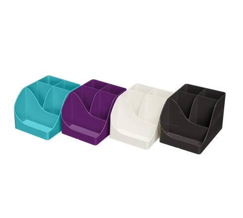 Mit seinen 5 unterschiedlich hohen Fächern bietet er viel Stauraum: 4 hohe Fächer für große Utensilien, Scheren, Stifte und 1 niedriges Fach für kleine Gegenstände wie Büroklammern, Reißzwecken, USB-Sticks oder sogar für Ihr Mobiltelefon.