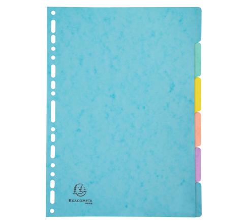 REGISTER AUS COLORSPAN-KARTON 400G, 6 NEUTRALE TABEN, FÜR FORMAT DIN A4, AQUAREL - FARBEN SORTIERT
