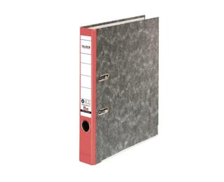 Schlitzordner im klassischen Wolkenmarmor-Design mit schwarzem oder farbigem Rücken, stabiler Pappkern, griffig genarbter Papierbezug, mit verstärkter Qualitätshebelmechanik, Kantenschutz, FSC®-zertifiziert