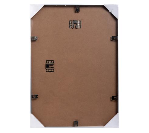Der Rahmen kann über die dafür vorgesehenen Befestigungen horizontal oder vertikal an die Wand gehängt werden.