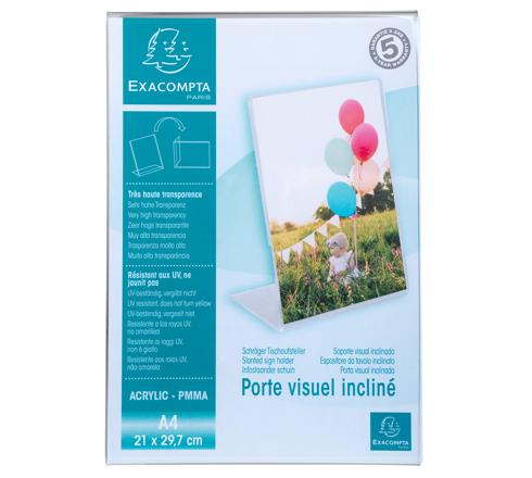 Le porte-visuel incliné vertical Exacompta est idéal pour afficher vos photos ou documents sur une table, bureau ou étagère. Son inclinaison permet une visibilité optimale de votre support.