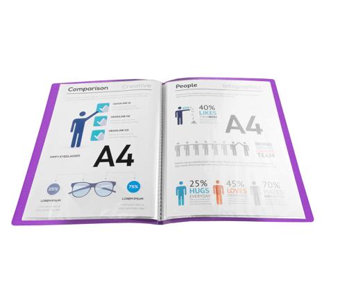 SICHTMAPPPEN A4, EINBAND AUS MITTELSTARKEM KARTON, 20 HÜLLEN, TEKSTO - FARBEN SORTIERT