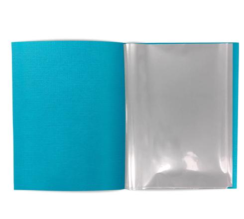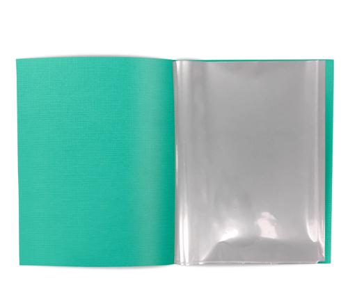Die Sichtmappe ist mit einem Einband aus mit Pflanzenöl beschichtetem Karton ausgestattet, der einen Schutz vor Flecken und Schmutz bietet. Ein Einband aus Karton, das sind 10-60% Plastik, das eingespart wird.