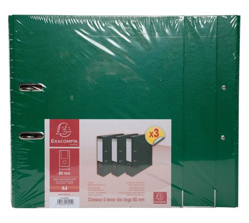 LOT DE 3 CLASSEURS À LEVIER - DOS DE 80MM - FORMAT A4 - EXTÉRIEUR EN POLYPROPYLÈNE / INTÉRIEUR EN PAPIER - VERT FONCÉ