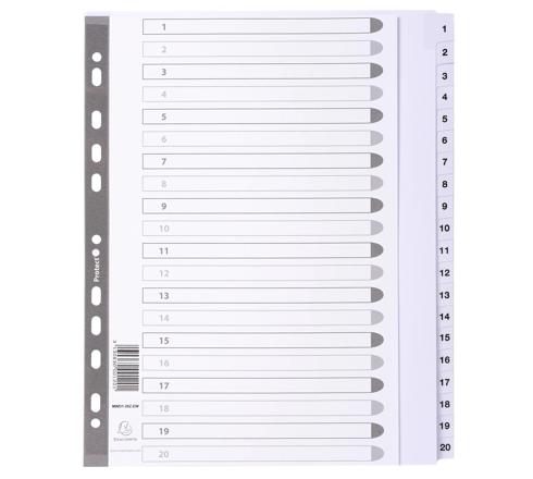 BEDRUCKTE REGISTER MIT PLASTIFIZIERTEN TABEN, 20 TABEN VON 1 BIS 20, DIN A4 MAXI - WEISS