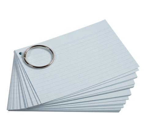 PAQUET DE 50 FLASHCARDS SOUS FILM + ANNEAU - BRISTOL LIGNÉ PERFORÉ - FORMAT A7 - COULEURS ASSORTIES