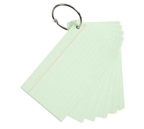 PAQUET DE 50 FLASHCARDS SOUS FILM + ANNEAU - BRISTOL LIGNÉ PERFORÉ - FORMAT A7 - COULEURS ASSORTIES