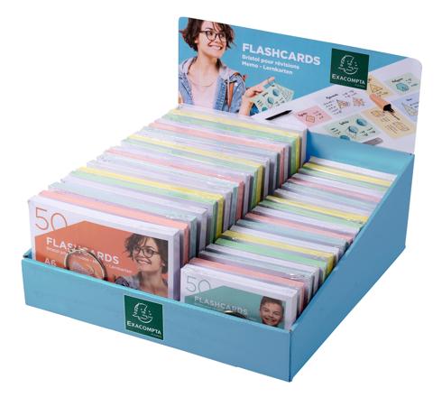 Présentoir composé de 38 paquets de 50 flashcards, formats A6 et A7. Pratique, à poser sur le comptoir ou en rayon.