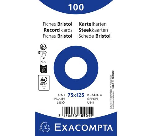 Exacompta Record Cards 125x200mm, Plain Made from Clairefontaine paper which is compatible for ink jet and laser printing and photocopying. 75x125mm Plain 205gsm White, 100 Cards shrink-wrapped