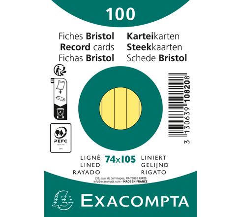 Exacompta lined record cards 7.5x10.5cm in size. Made with thick 205gsm card, and are compatible with inkjet and laser printing and photocopying. Pack of 100 cards. Lined cards in the colour blue