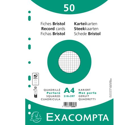 PAQUET 50 FICHES SOUS FILM - BRISTOL QUADRILLÉ 5X5 PERFORÉ 210X297MM - BLANC