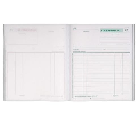 Ce carnet permet d'établir un bon de livraison tout en conservant une copie. Comporte une clause de réserve de propriété.
