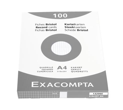 Record Cards Pack 100 White 210X297 Squared Exacompta Bristol record cards and made from Clairefontaine paper which is compatible for inkjet and laser printing and photocopying Each type of record card is presented in a different colour case to be easily recognisable and convenient to use Packs of index cards in a box are available individually Weight 205gsm