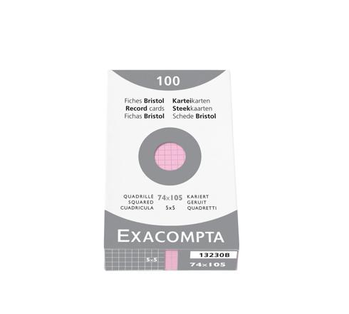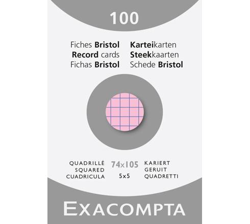 ÉTUI DE 100 FICHES - BRISTOL QUADRILLÉ 5X5 NON PERFORÉ 74X105MM - ROSE