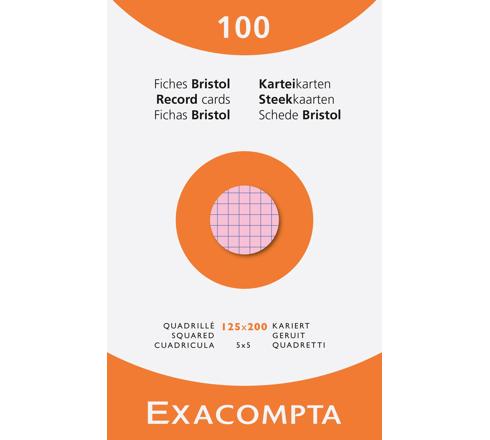 Box of 100 record cards - squared 125x200mm A very specific manufacturing process from fibres of selected origins. White cellulose u sed in neutral PH, can be used without damage to the environment - Exacompta record cards are products of very high quality with a proven and recognised reputation. Each kind of record card, squared punched, unpunched plain, assorted colours, or printed is delivered in boxes of different colours, easily recognizable and practical for sale.