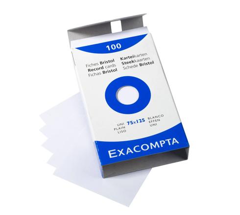 Record Cards Pack 100 White 75X125 Plain Exacompta Bristol record cards and made from Clairefontaine paper which is compatible for inkjet and laser printing and photocopying Each type of record card is presented in a different colour case to be easily recognisable and convenient to use Packs of index cards in a box are available individually Weight 205gsm