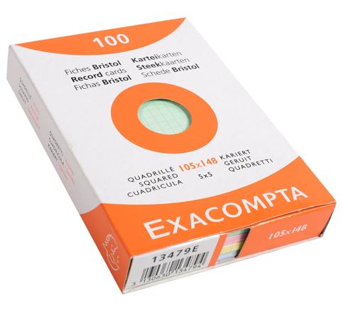 ÉTUI DE 100 FICHES - BRISTOL QUADRILLÉ 5X5 105X148MM - COULEURS ASSORTIES