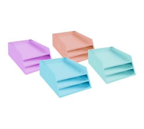 CORBEILLE À COURRIER COMBO 3 NIVEAUX CARTON AQUAREL - COULEURS ASSORTIES