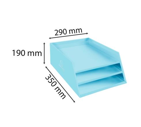 La corbeille à courrier Aquarel en carton comporte 3 niveaux pour ranger tous vos documents au format A4+ (jusqu'à 24x32cm).
