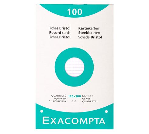 Record Cards Punched Pack 100 White 125X200 Squared Exacompta Bristol record cards and made from Clairefontaine paper which is compatible for inkjet and laser printing and photocopying Each type of record card is presented in a different colour case to be easily recognisable and convenient to use Packs of index cards in a box are available individually Weight 205gsm