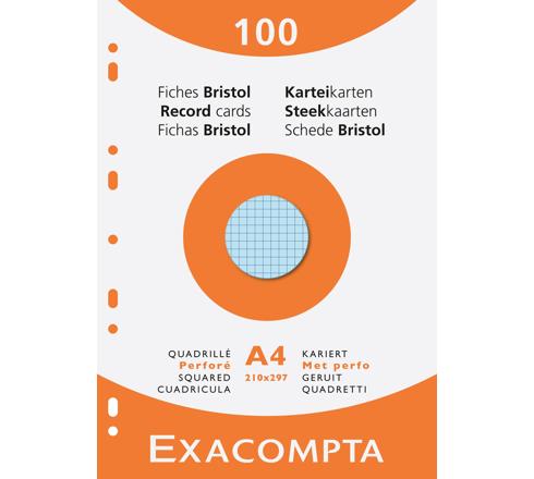 Record Cards Punched Pack 100 Assorted 210X297 Squared Exacompta Bristol record cards and made from Clairefontaine paper which is compatible for inkjet and laser printing and photocopying Each type of record card is presented in a different colour case to be easily recognisable and convenient to use Packs of index cards in a box are available individually Weight 205gsm
