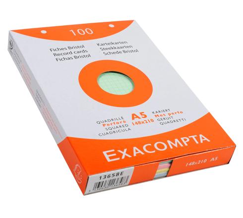 ÉTUI DE 100 FICHES - BRISTOL QUADRILLÉ 5X5 PERFORÉ 148X210MM - COULEURS ASSORTIES