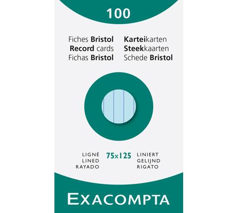 ÉTUI DE 100 FICHES - BRISTOL LIGNÉ NON PERFORÉ 75X125MM - BLEU CIEL