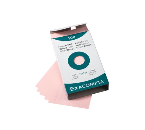 EXACOMPTA RECORD CARDS PACK 100 BLUE 75X125 LINED - PINK