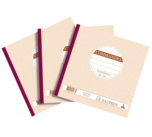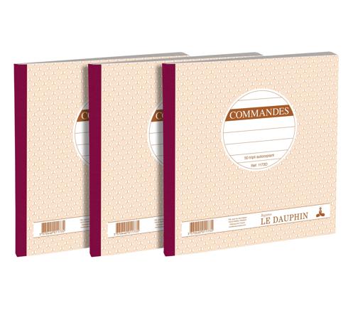LOT DE 3 MANIFOLDS COMMANDES - PAPIER AUTOCOPIANT - TRIPLICATA (1 ORIGINAL ET 2 COPIES) - 50FEUILLES - FORMAT 21 X 21 CM - COUVERTURE VERNIE - AVOINE