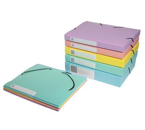 Delivered flat the Cartobox elasticated filing box, an innovation from Exacompta, is very easy to assemble with its small folding tabs and then has the same qualities as a box delivered assembled.
