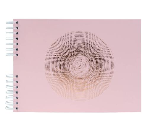 Ellipse Wire bound Album 50p 32x22 Ellipse, trendy colours, enhanced by a rosy gold stamp. Leather imitation PU material with a unique pink gold elliptic embossing on the cover Format 32x22cm Wire bound with 50 white pages Made in France. FSC® Certified