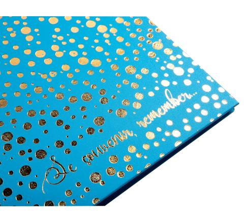 Traditional albums with a leather imitation cover and a golden peas embossing on the entire cover