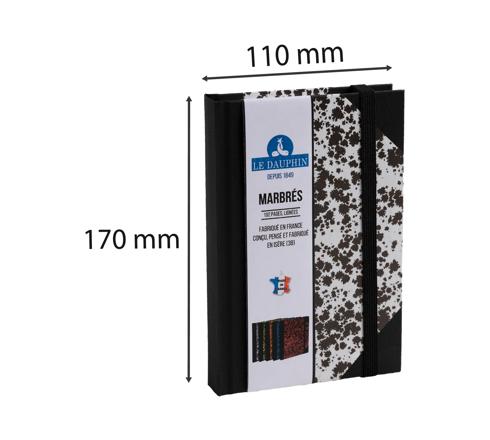 Carnet de notes marbré blanc, ligné, 192 pages, 17x11cm