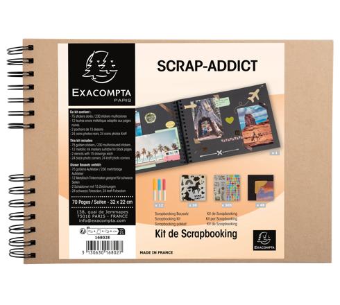 Découvrez notre kit de scrapbooking complet ScrapAddict avec un album à spirales kraft de haute qualité et tout le matériel nécessaire pour mettre en relief vos souvenirs et exprimer votre créativité.