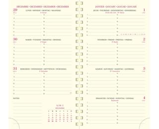 La recharge de votre agenda est fabriquée en France dans une démarche d'amélioration continue, avec un papier issu de forêts contrôlées. La semaine sur 2 pages à l'horizontal, 7 jours complets, large amplitude horaire avec RDV de 7h à 20h, édition multilingue.