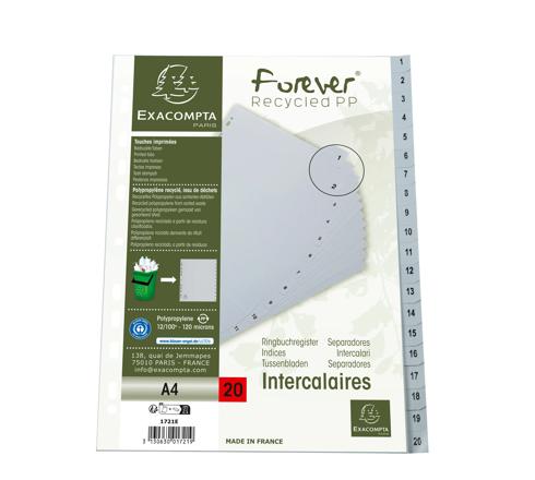 INTERCALAIRES IMPRIMÉS NUMÉRIQUES PP GRIS RECYCLÉ 20 POSITIONS - A4 - GRIS