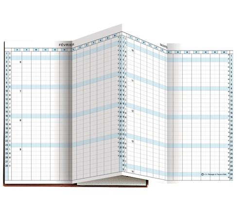 L'agenda planning mensuel extra-plat. Il permet de visualiser les 12 mois de l'année en cours et le mois de janvier suivant, d'un coup d'oeil en dépliant toutes les pages. Sur chaque page de mois, il est possible de cocher des cases horaires indiquées de 8h à 19h, et de Nnoter une remarque sur la ligne correspondante au jour.