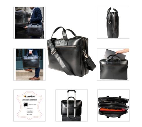 SACOCHE DOUBLE ORDINATEUR EXACTIVE CUIR - NOIR