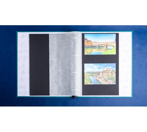 60 black pages with Pergamine. Refillable up to approximately 200 pages. Capacity 120 photos 10x15cm. Plastic free logo paper interior.