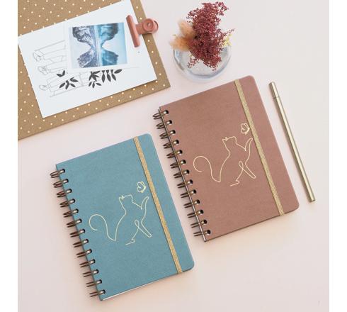 Découvrez l'agenda idéal pour les passionnés de chats. Il se distingue par sa couverture spiralée cuivrée, son marquage élégant et son élastique de fermeture doré. Agenda Elise 1 jour par page pour les jours de semaine et 2 jours par page pour le week-end.