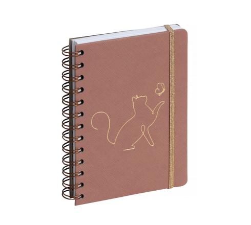 Un agenda pour les amoureux des chats. Agenda 1 jour par page la semaine et 2 jours par page pour le week-end. Couverture spiralée cuivrée, marquage fin et élastique de fermeture dorés.