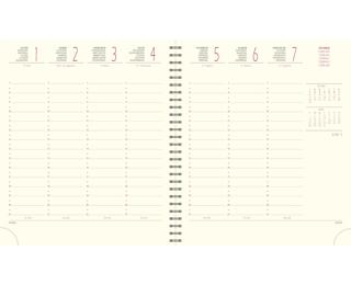 Les + : impression en rouge et gris sur papier ivoire Clairefontaine, reconnu pour sa qualité et pour permettre une écriture douce et fluide - coins détachables, pour pouvoir accéder rapidement au jour en cours - indication du numéro de semaine pour se repérer plus facilement.