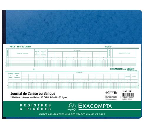 PIQÛRE JOURNAL DE CAISSE OU BANQUE 29,7X38CM À TÊTE PARESSEUSE - COL. VENT. : 17 DÉBIT, 9 CRÉDIT - 33 LIGNES - 80 P.
