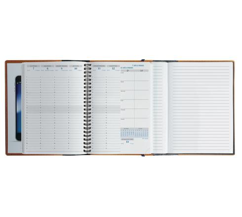 La semaine sur 2 pages à la verticale, vision de la semaine d'un seul coup d'il, large amplitude horaire du lundi au samedi (7h à 21h), petit espace de notes le dimanche. Edition française.