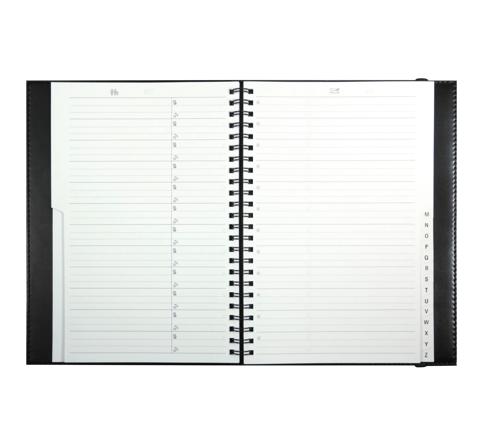 96 pages - Spirales métal pour une ouverture à plat - Index alphabétique - Pages de gauche pour les numéros de téléphone et pages de droite pour les adresses e-mails ou postales.
