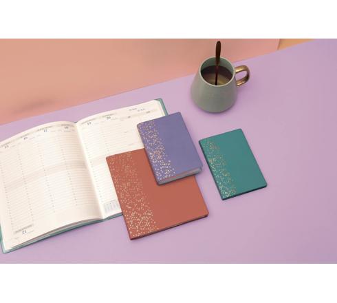 Une envolée de petites bulles dorées ! La grille EasyTime 21 avec la semaine de 7 jours sans horaires pour noter sans contrainte les rdv ou choses à faire, une page complète pour les notes et les to do list. Au début de chaque mois, se trouve un calendrier récapitulatif mensuel sous forme de cases pour se projeter et s'organiser plus facilement.