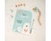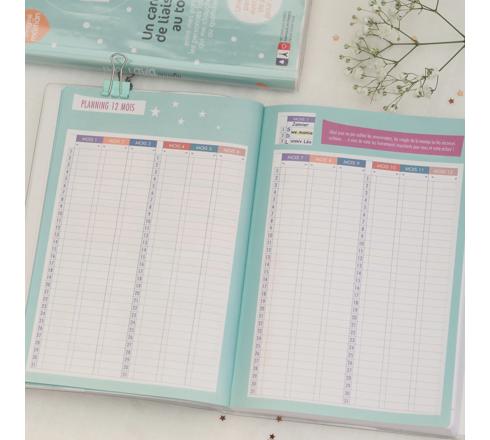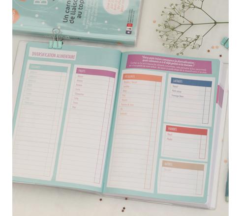 Des pages infos, essentielles sur bébé : rythme, alimentation, santé, personnes de confiance. Une couverture résistante et lavable, personnalisable avec des stickers inclus.