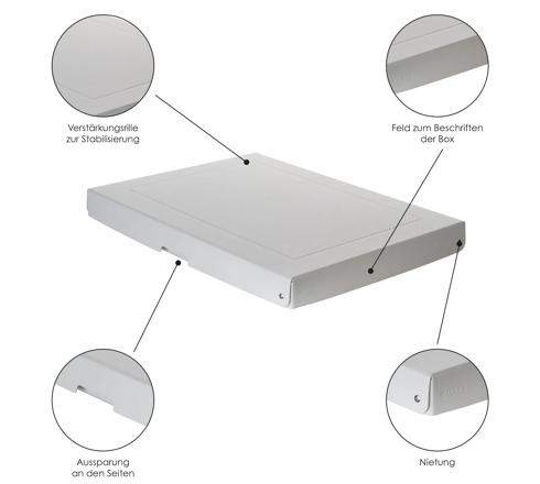 Cette gamme Pure Box Pro complète la gamme Pure Box et se distingue par ses certifications DIN ISO 9706, DIN ISO 16245 et Photographic Activity Test pour une utilisation professionnelle. Le rivetage est garantie 10 ans.