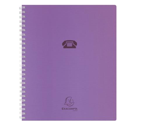 96 pages - Spirales métal pour une ouverture à plat - Index alphabétique - Pages de gauche pour les numéros de téléphone et pages de droite pour les adresses e-mails ou postales.